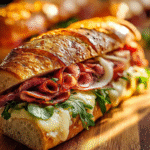 These Baked Italian Sub Sandwiches take classic deli flavors to a new level. Loaded with layers of savory Italian meats, melted cheese, and zesty seasonings, then baked to golden perfection, they’re perfect for lunch, dinner, or gatherings. Crispy on the outside yet soft and gooey inside, these sandwiches are hearty, satisfying, and full of bold, irresistible flavor.